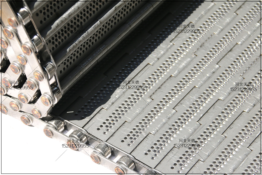 這款鏈板輸送帶采用不銹鋼304鋼板折彎沖孔完成的,所有尺寸都是根據客戶的的要求來生產加工的。