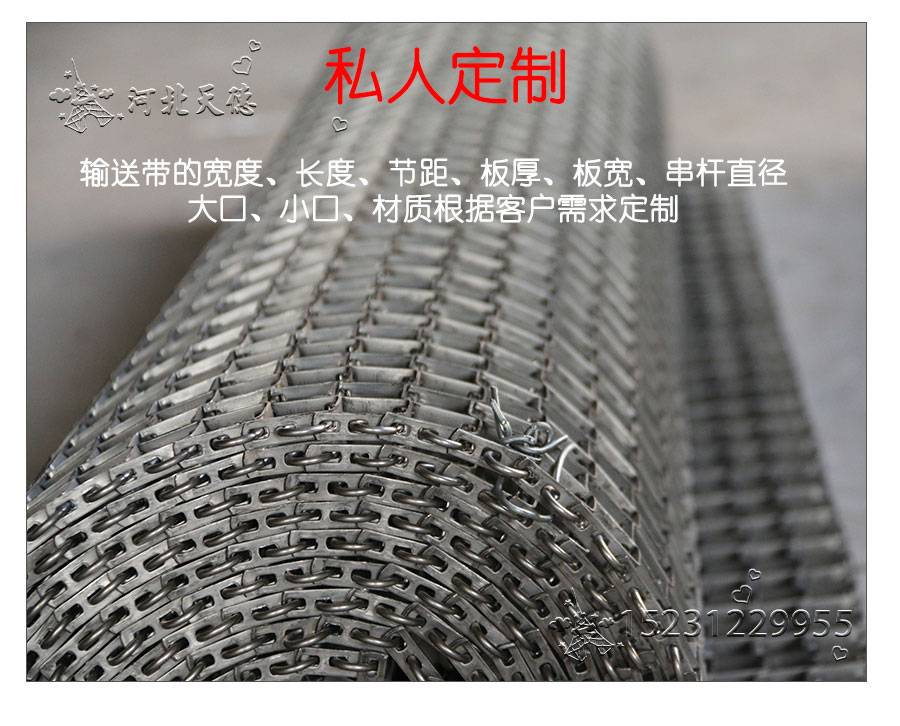 長城網(wǎng)帶材質(zhì):有A3低碳鋼、45#鋼、1Cr13耐熱鋼、 不銹鋼、304不銹鋼、1Cr18Ni9Ti不銹鋼、0Cr18Ni14NO2CU2耐熱耐酸鋼等